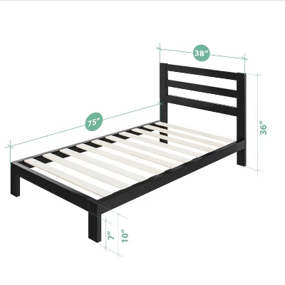 The steel-framed Modern Studio Platform Bed with Headboard by Zinus features wooden slats that provide strong support for your memory foam, latex, or spring mattress. Low-profile 10-inch frame height with 7 inches of clearance under the frame for under-bed storage. Please follow instructions closely for proper assembly. Numbers or Arrows must match on all four corners and holes aligned. Improper assembly will result in the slats being too wide and Part C being too short. The Modern Studio Platform Bed 2000 with headboard provides stylish and strong support for your mattress.