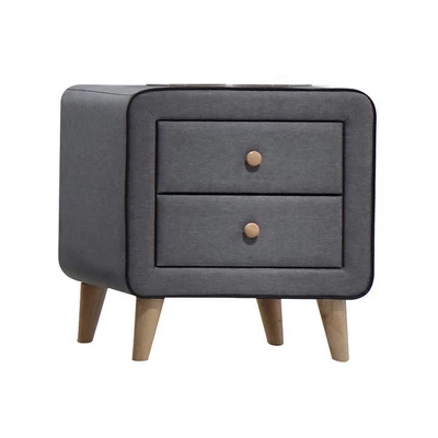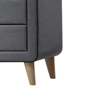 The valinda nightstand in light gray fabric finish features 2 drawers. With light gray fabric & black welt trim padded drawer and wood tapered leg in natural finish. Offers you plentiful storage with spacious drawers. Striking clean lines and a rectangular body, the space-efficient nightstand will blend effortlessly in your existing decors. The tabletop is perfect for displaying a photo frame or justing putting your phone when sleeping to provide convenience.