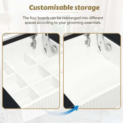 - 【Gorgeous Tabletop】Smooth and glossy black/grey tabletop not only enhances aesthetics, but also provides a durable, easy-to-clean surface for your cosmetics and accessories.