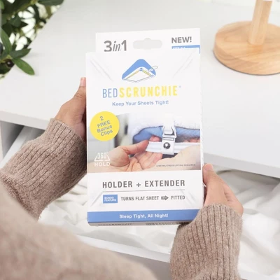 Introducing the 360-degree bed sheet holder, an all-in-one bed tightening solution that gives your bed a flawless 5-star hotel look. Make any sheets perfectly fitted with the Bed Scrunchie!Bed Scrunchie works perfectly on fitted, flat, or top sheets, as well as mattress toppers, protectors, and featherbeds. It can even convert a flat sheet into a perfectly tailored fitted sheet. It’s also been carefully designed to never damage any sheet!How to use it? Simply attach the clips on the edges of your bed sheet, place the sheet over your mattress (like you normally would), tighten and lock the cord and you’re good to go! Enjoy tight, crisp sheets until your next wash.