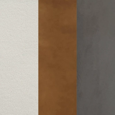 - The sling covered panels features a boucle rough fabric upholstery and middle brown Italian Turin faux leather straps for that classic look.