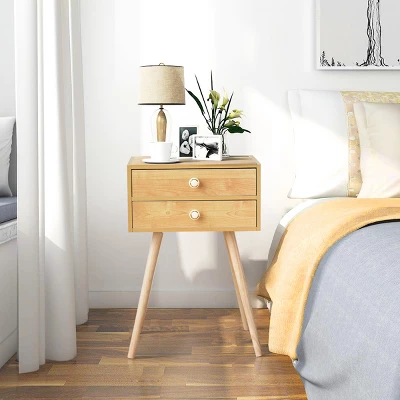 - 【Two Drawer Storage Space】This Costway nightstand provides two drawer storage space. You could use it to organize different small staff and it could make your bedroom or living room more clean and artistic.