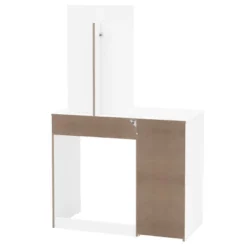 Add extra storage and style to your bedroom with the Harper Vanity with Lighted Mirror from Polifurniture. This vanity has a modern design and the solid white finish will fit with a variety of bedroom decors. It is constructed from engineered wood with a durable and resistant melamine finish to protect against everyday use. The large lighted mirror and spacious table top provide the perfect place to get ready for your day or a fun night out. The multiple storage options will keep all your comestics and personal belongings neat and organized. There five drawers on ball bearing glides in various size and the bottom drawer is deeper making it perfect for larger or taller items. With its modern design, large mirror and tons of storage options the Harper Vanity is perfect for any bedroom.