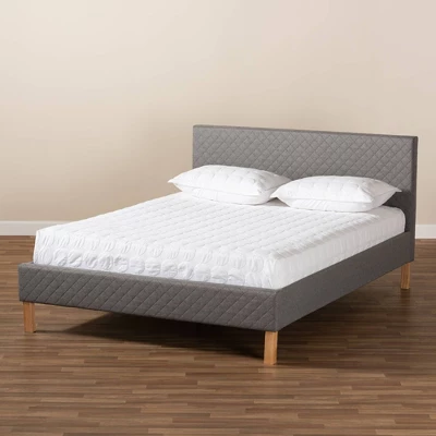 Create a cozy sanctuary in your bedroom with the Aneta bed. Built with a durable wood frame, the Aneta bed is upholstered in a soft, resilient gray polyester fabric. The upholstery features diamond patterned stitching reminiscent of a traditional quilt, adding both charm and texture. The traditional quilted upholstery is paired with light oak finished block legs to give the Aneta a unique, contemporary look. The Aneta bed is made in Malaysia and requires assembly.