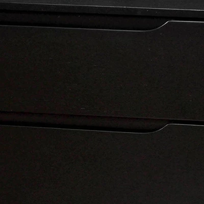 For A Quick Modern Update To Your Home, This Beautiful Nightstand will add that Mid-Century Appeal. Coordinating Case Goods Boast Slim Flared Legs And Recessed Handle Drawer Pulls. It Is Built In Wood And Has A bold black finish.