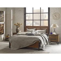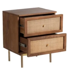 Jevenci Vintage Antique Dark Bronze Metal And Wood 1-Drawer Nightstand – Walnut – Baxton Studio