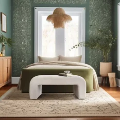 Lily 47″ Upholstered Large Bouclé Waterfall Bench Look Storage Bench For Bedroom-The Pop Maison