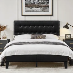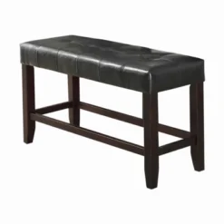 Wood Based High Bench With Tufted Seat Black/Brown – Benzara
