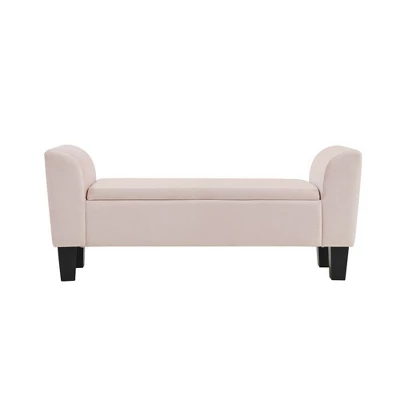 Glam up your home with the contemporary velvet storage bench! The chic design of the curved arms, solid wood tapered legs and performance velvet fabric will add a striking visual appeal in any room setting. In addition, you can also get a hidden storage space by opening the seat cushion, which can store enough items.