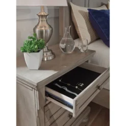 Rustic coastal design elements and a classic ring-style drawer pull highlight this Homestyles Southport Nightstand. The drawer offers a convenient place for glasses and personal items, and the open space is perfect for stacking up late night reading material. The solid construction provides years of worry-free performance.