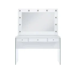 2pc Veronique White Finished Wood Vanity Table With Mirror And Ottoman White – Baxton Studio