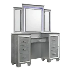 3pc Anza Multi Storage Vanity Set With Tri Fold Mirror And Stool White – HOMES: Inside + Out